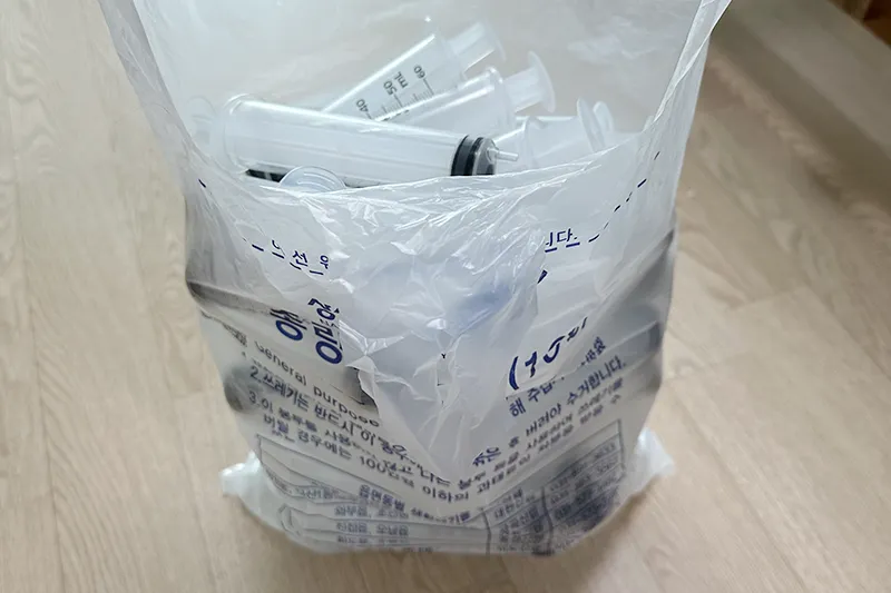 감염을 최소화하기 위해 모두 일회용 제품을 사용하기 때문인데요. 그중 주사기와 나비침을 어떻게 버려야 할지 참 난감했어요. (저만 그런 거 아니죠?) 인터넷 검색도 해보고 GPT에도 물어보고 다른 집사님들 코멘트를 찾아보기도 했지만 다들 말이 달라서 확실한 답을 얻기 위해 시청 환경과에 전화했습니다!